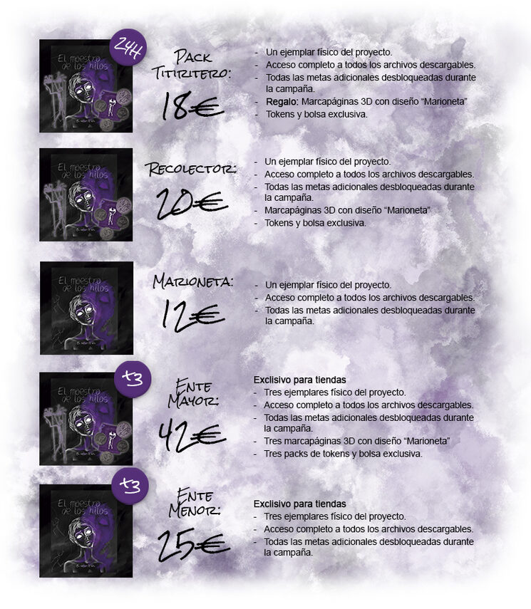 Por otra parte, el titiritero (director de juego) no dirige mapas ni extensas aventuras: dirige una vida. Escena tras escena, va narrando el destino de la marioneta observando cómo sus decisiones, sus errores y sus miedos le van conduciendo, poco a poco, hacia la perdición.