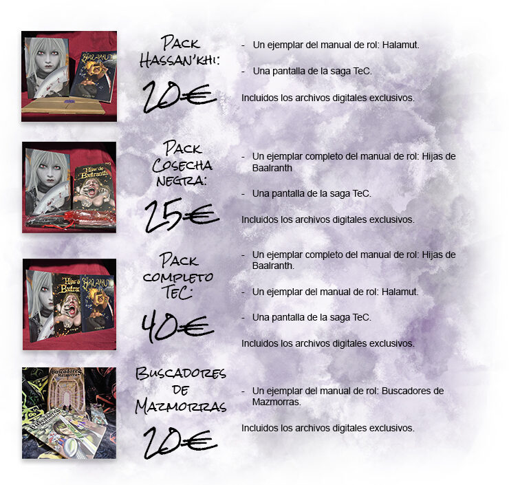 Consigue los manuales de la saga TeC con descuentos* únicos. ¡No dejes pasar esta oportunidad! Y, si todavía no tienes un Buscador de Mazmorras, también podrás adquirirlo aquí. Además, puedes adquirir los mismos packs de recompensas si quieres una mayor cantidad de ejemplares.