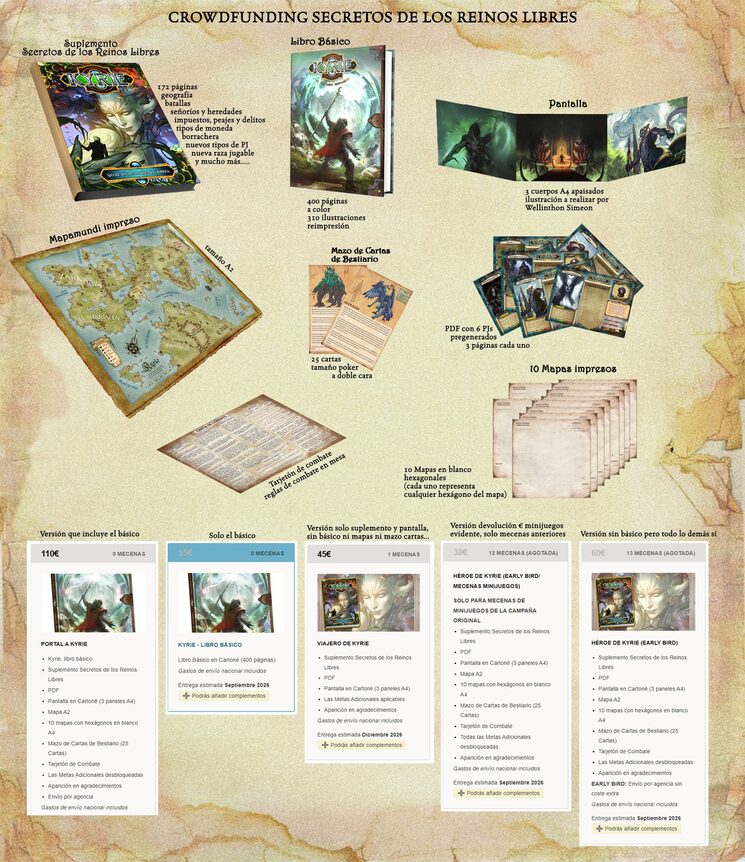 La finalidad de la campaña es completar una tirada en tapa dura de Kyrie, Secreto de los Reinos a todo color, con la misma calidad del libro básico.