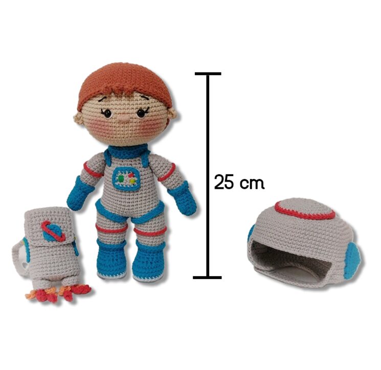 Aunque Paloma es nuestra guía por la ciudad, no podíamos olvidar dos símbolos tan importantes para Salamanca como son la rana y el astronauta. Por eso hemos incluido en las recompensas dos muñecos en crochet hechos a mano de aproximadamente 25 cm.