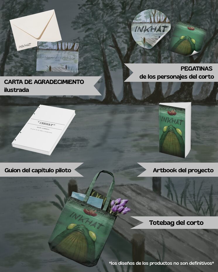 Aquí encontrarás las distintas recompensas creadas especialmente para quienes decidan adentrarse en esta leyenda y acompañarnos en el proceso de dar forma a este mundo, sus personajes y los misterios que se esconden en el pantano.