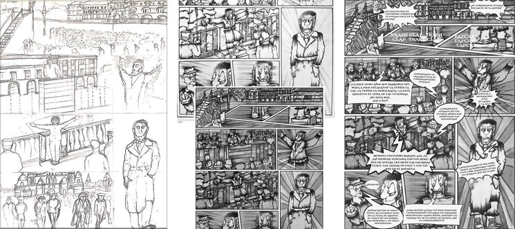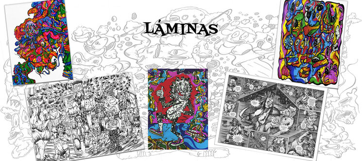 Las láminas incluidas pertenecen a varias series del proceso creativo del cómic: