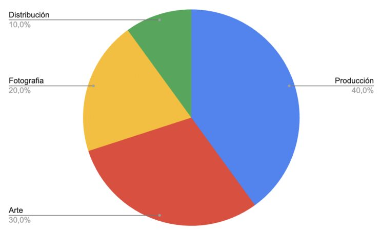 • 40% Producción: Gastos con localización, transporte y alimentación del equipo y elenco;