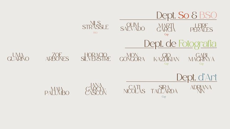 El equipo está formado por alumnos de primer grado de la Escuela Superior de Cine y Audiovisuales de Cataluña. Juntos estamos emprendiendo un viaje de aprendizajes y experiencias que justo acaba de comenzar.